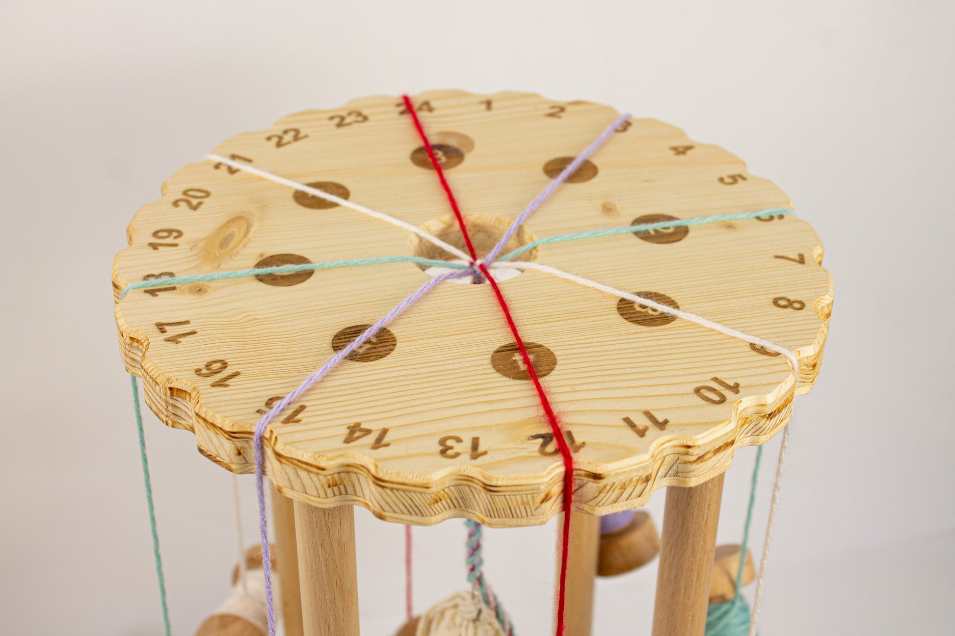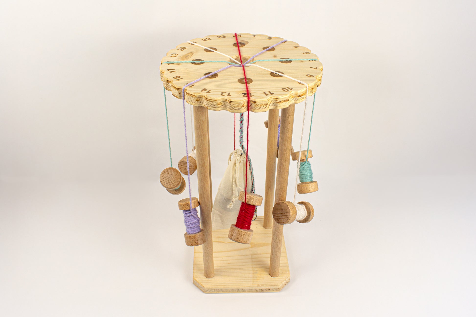 Conçu pour les débutants comme pour les praticiens expérimentés, il facilite l'apprentissage tout en offrant une grande précision. Ses deux anneaux de guidage numérotés permettent de réaliser des tresses simples à 8 bobines ainsi que des motifs plus complexes utilisant jusqu'à 24 bobines.